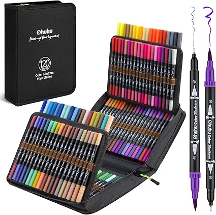 The Ohuhu Dual Tips Alcohol Art Marker Set offers 120 vivid shades designed for both detailed and